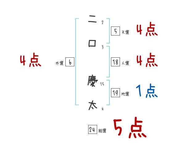 二口慶太さんの画数の鑑定結果