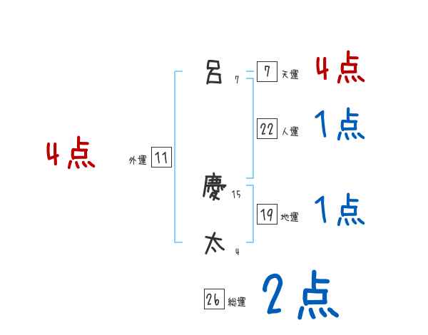 天運![]() | 呂慶太さんの天運は7画の4つ星!強い意志や信念を持ち独立心が強い。自立する。 家系が持つ宿命的な運勢を表します。祖先から受け継いだ苗字ですので自分の力が及びません。家柄を象徴します。 |