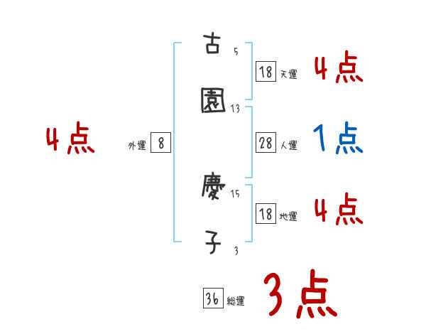 古園慶子さんの画数の鑑定結果