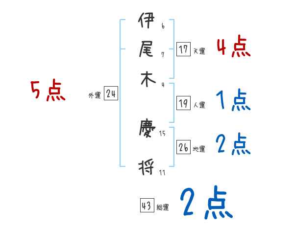 伊尾木慶将さんの画数の鑑定結果
