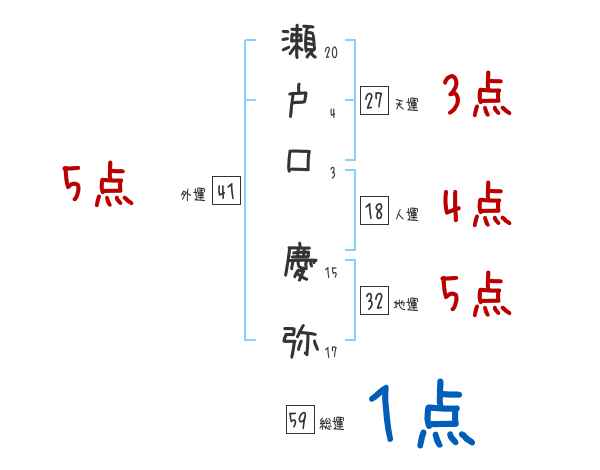瀬戸口慶弥さんの画数の鑑定結果