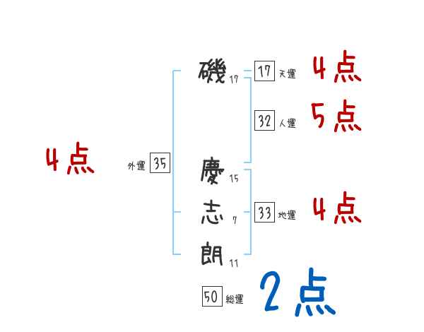 磯慶志朗さんの画数の鑑定結果