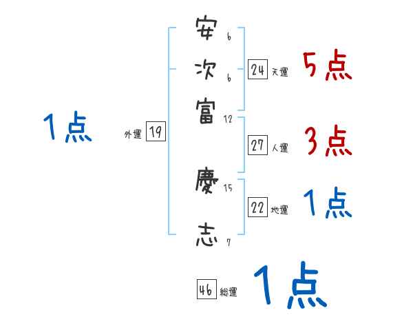 安次富慶志さんの画数の鑑定結果