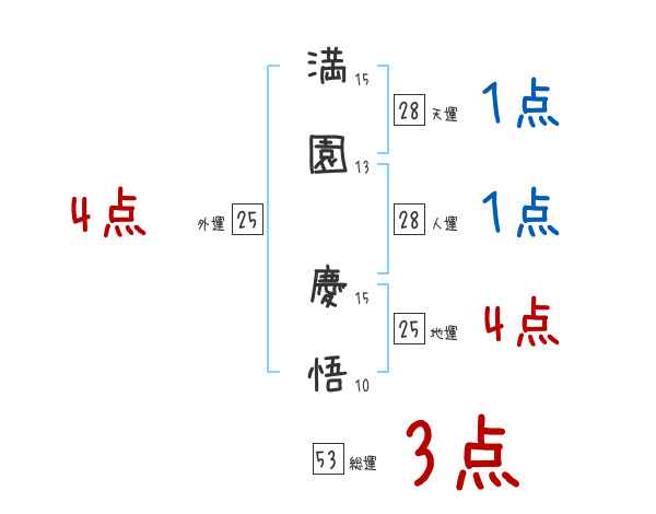 満園慶悟さんの画数の鑑定結果