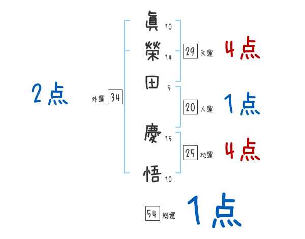 眞榮田慶悟さんの画数の鑑定結果