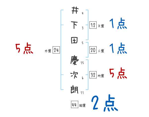 井下田慶次朗さんの画数の鑑定結果