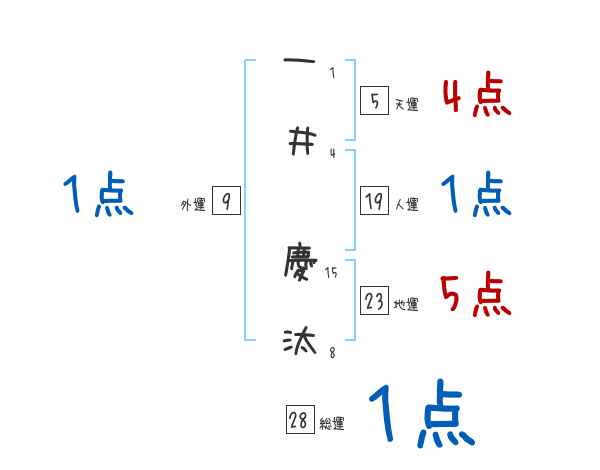 総運![]() | 一井慶汰さんの総運は28画の1つ星!家庭環境に注意。スポーツで活躍できる能力があるかも。 あなたの人生を表す1番重要な運勢です。生涯を通じて影響する総合運となり、主に50歳以降の晩年期に影響を及ぼします。 |