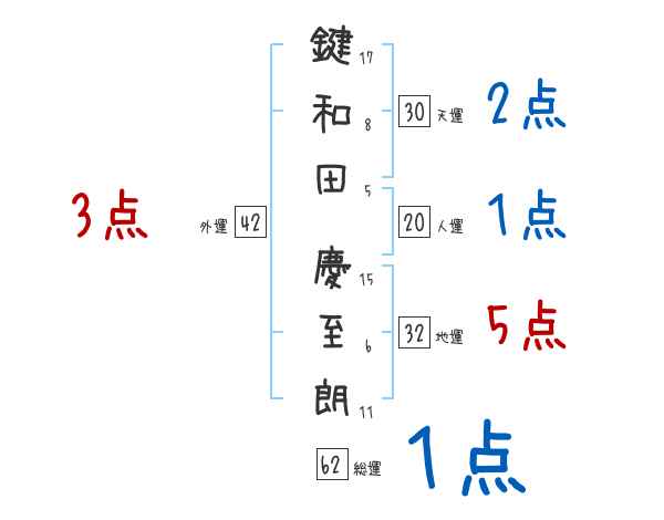 鍵和田慶至朗さんの画数の鑑定結果