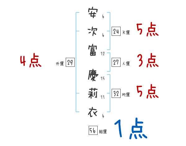 安次富慶莉衣さんの画数の鑑定結果