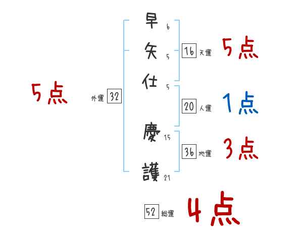 早矢仕慶護さんの画数の鑑定結果
