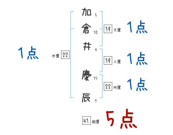 外運![]() | 加倉井慶辰さんの外運は22画の1つ星!努力することが苦手ないっぽう手先が器用。芸術性にも優れる。 生活面を象徴する運勢です。外部から受ける影響力を表し、結婚運、家庭運や職場、環境への順応性を表します。 |