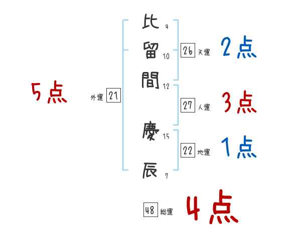 比留間慶辰さんの画数の鑑定結果