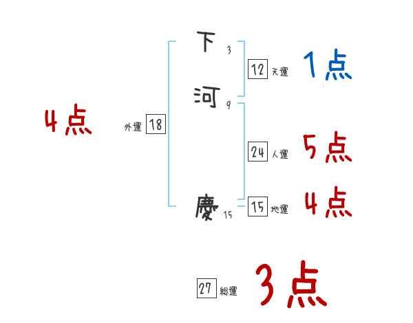 下河慶さんの画数の鑑定結果