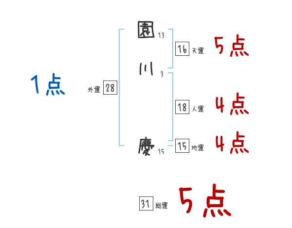 園川慶さんの画数の鑑定結果