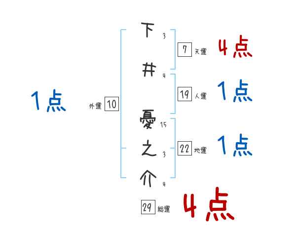 下井憂之介さんの画数の鑑定結果