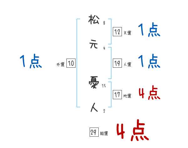 松元憂人さんの画数の鑑定結果