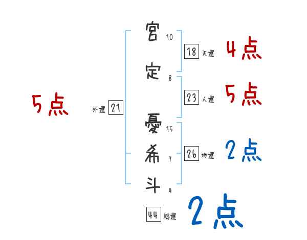 宮定憂希斗さんの画数の鑑定結果