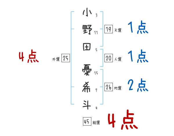 小野田憂希斗さんの画数の鑑定結果