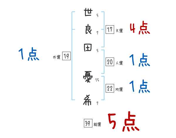 | 天運  | 世良田憂希さんの天運は17画の4つ星!積極的な行動力。地位を気づき財産を手に入れる。純粋な心と直感力。家系が持つ宿命的な運勢を表します。祖先から受け継いだ苗字ですので自分の力が及びません。家柄を象徴します。 |