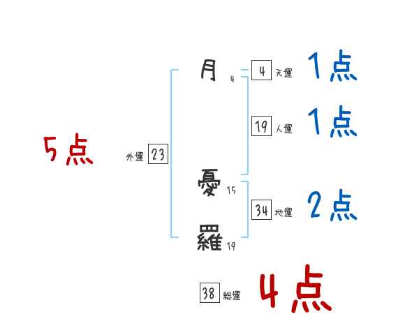 月憂羅さんの画数の鑑定結果