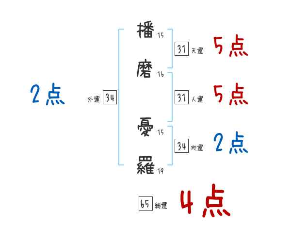 播磨憂羅さんの画数の鑑定結果