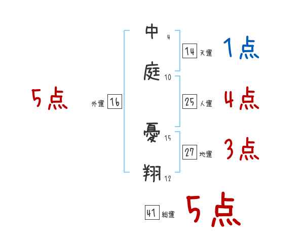 中庭憂翔さんの画数の鑑定結果