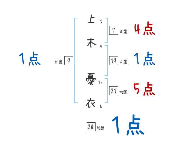 天運![]() | 上木憂衣さんの天運は7画の4つ星!強い意志や信念を持ち独立心が強い。自立する。 家系が持つ宿命的な運勢を表します。祖先から受け継いだ苗字ですので自分の力が及びません。家柄を象徴します。 |