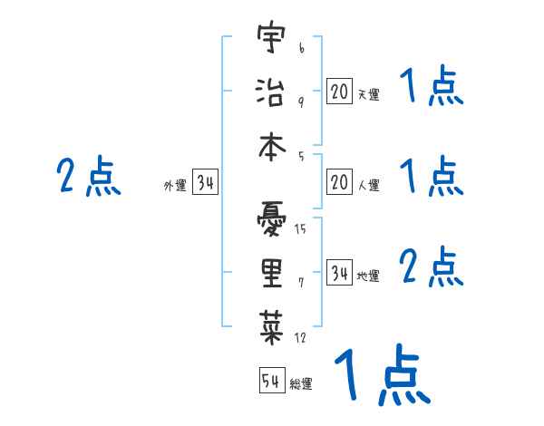 宇治本憂里菜さんの画数の鑑定結果