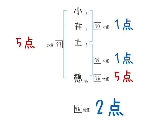 小井土憩さんの画数の鑑定結果