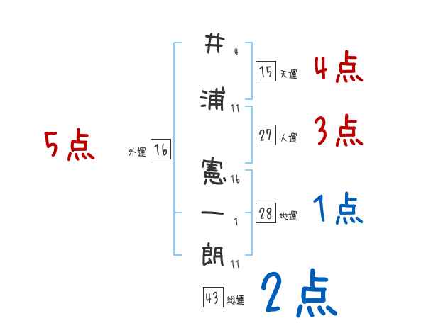 井浦憲一朗さんの画数の鑑定結果