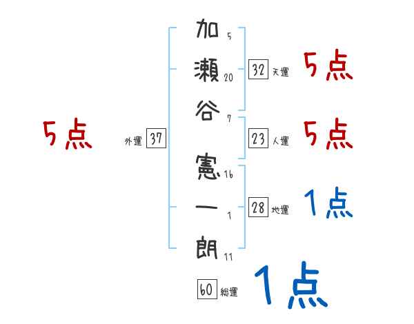 加瀬谷憲一朗さんの画数の鑑定結果