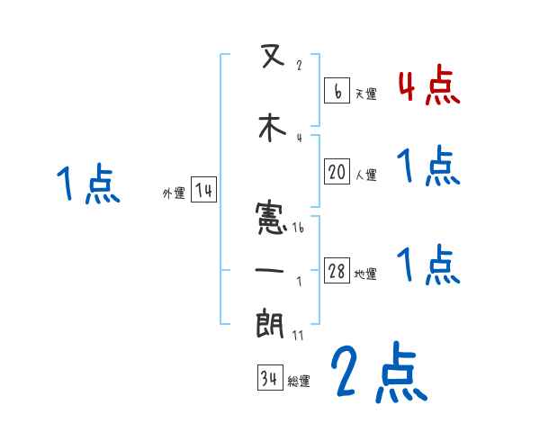 外運![]() | 又木憲一朗さんの外運は14画の1つ星!人に対して優しいがストレスを溜め込みがち。人間関係のトラブルを避けるよう気をつけましょう。 生活面を象徴する運勢です。外部から受ける影響力を表し、結婚運、家庭運や職場、環境への順応性を表します。 |