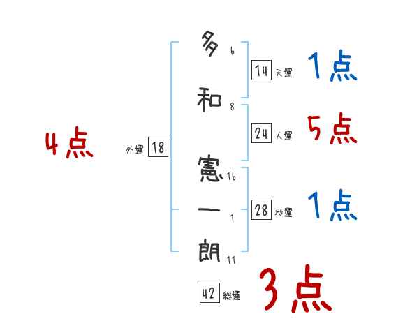 多和憲一朗さんの画数の鑑定結果