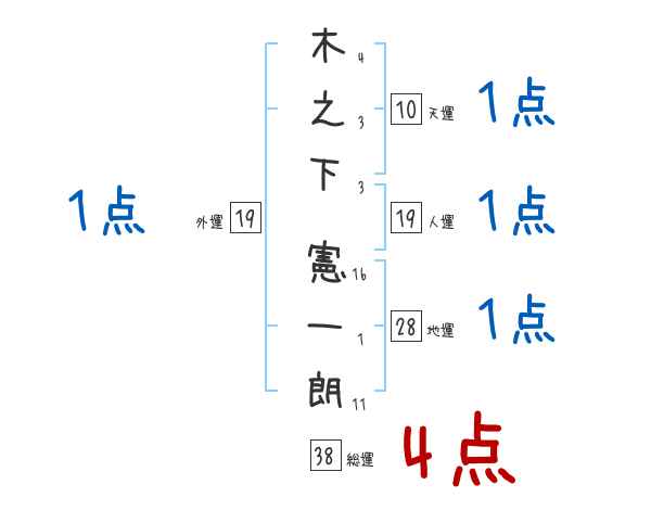 木之下憲一朗さんの画数の鑑定結果