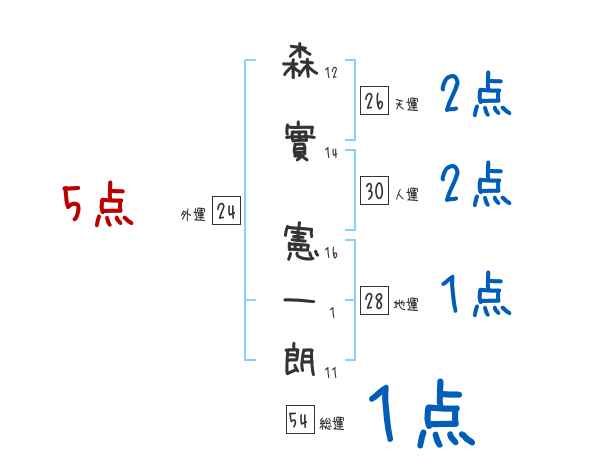 森實憲一朗さんの画数の鑑定結果