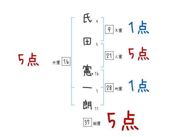 氏田憲一朗さんの画数の鑑定結果