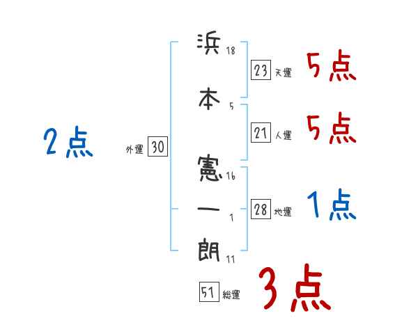 浜本憲一朗さんの画数の鑑定結果