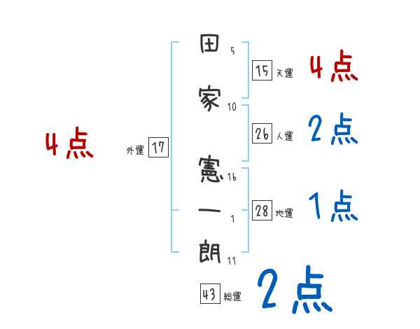 田家憲一朗さんの画数の鑑定結果