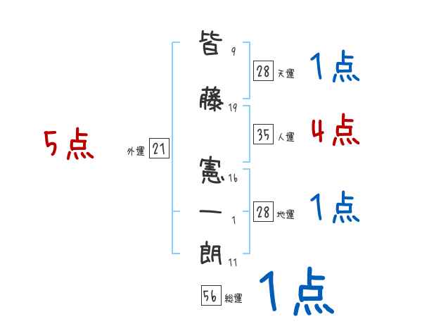 皆藤憲一朗さんの画数の鑑定結果