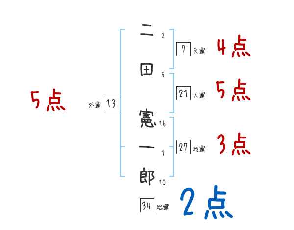 二田憲一郎さんの画数の鑑定結果