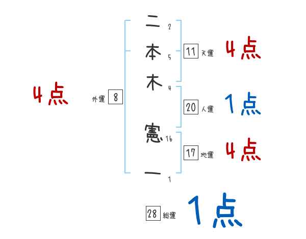 二本木憲一さんの画数の鑑定結果