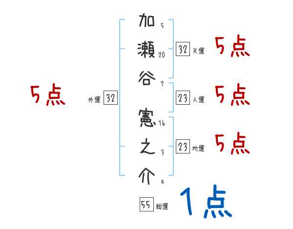 加瀬谷憲之介さんの画数の鑑定結果
