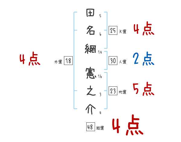 田名網憲之介さんの画数の鑑定結果