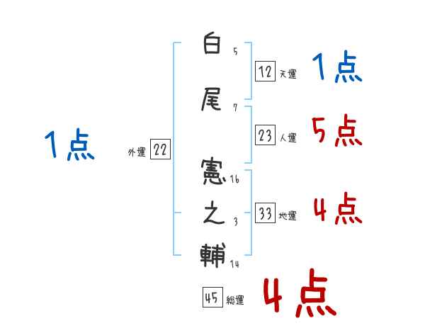 白尾憲之輔さんの画数の鑑定結果