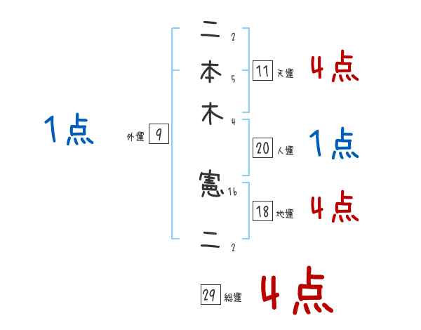 総運![]() | 二本木憲二さんの総運は29画の4つ星!完全主義で才能がある。厳格な心の持ち主。 あなたの人生を表す1番重要な運勢です。生涯を通じて影響する総合運となり、主に50歳以降の晩年期に影響を及ぼします。 |