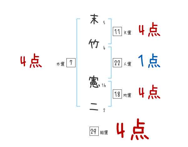 末竹憲二さんの画数の鑑定結果