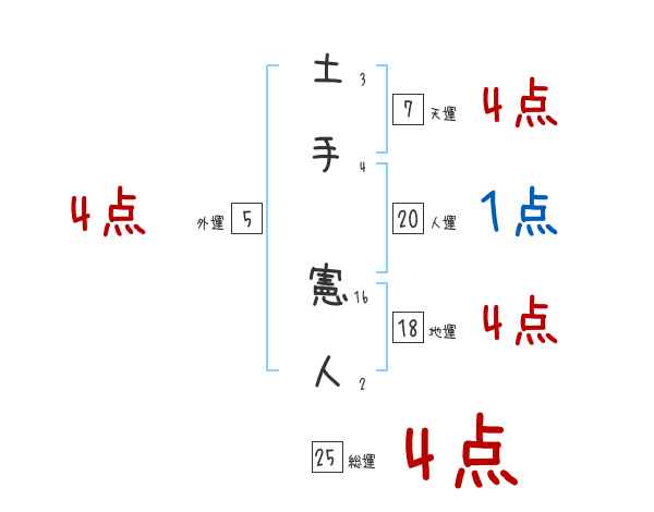 天運![]() | 土手憲人さんの天運は7画の4つ星!強い意志や信念を持ち独立心が強い。自立する。 家系が持つ宿命的な運勢を表します。祖先から受け継いだ苗字ですので自分の力が及びません。家柄を象徴します。 |