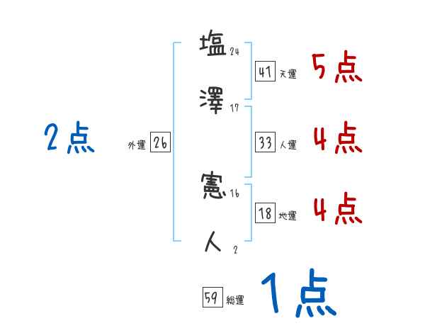 塩澤憲人さんの画数の鑑定結果