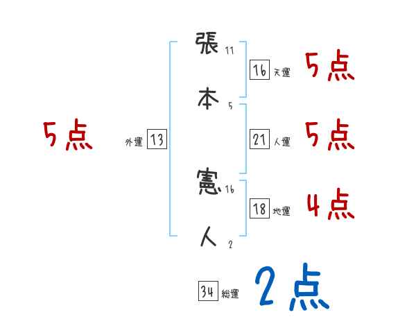 張本憲人さんの画数の鑑定結果