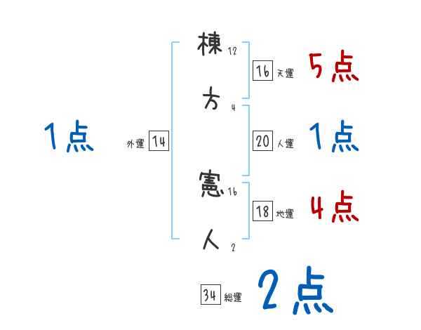 棟方憲人さんの画数の鑑定結果
